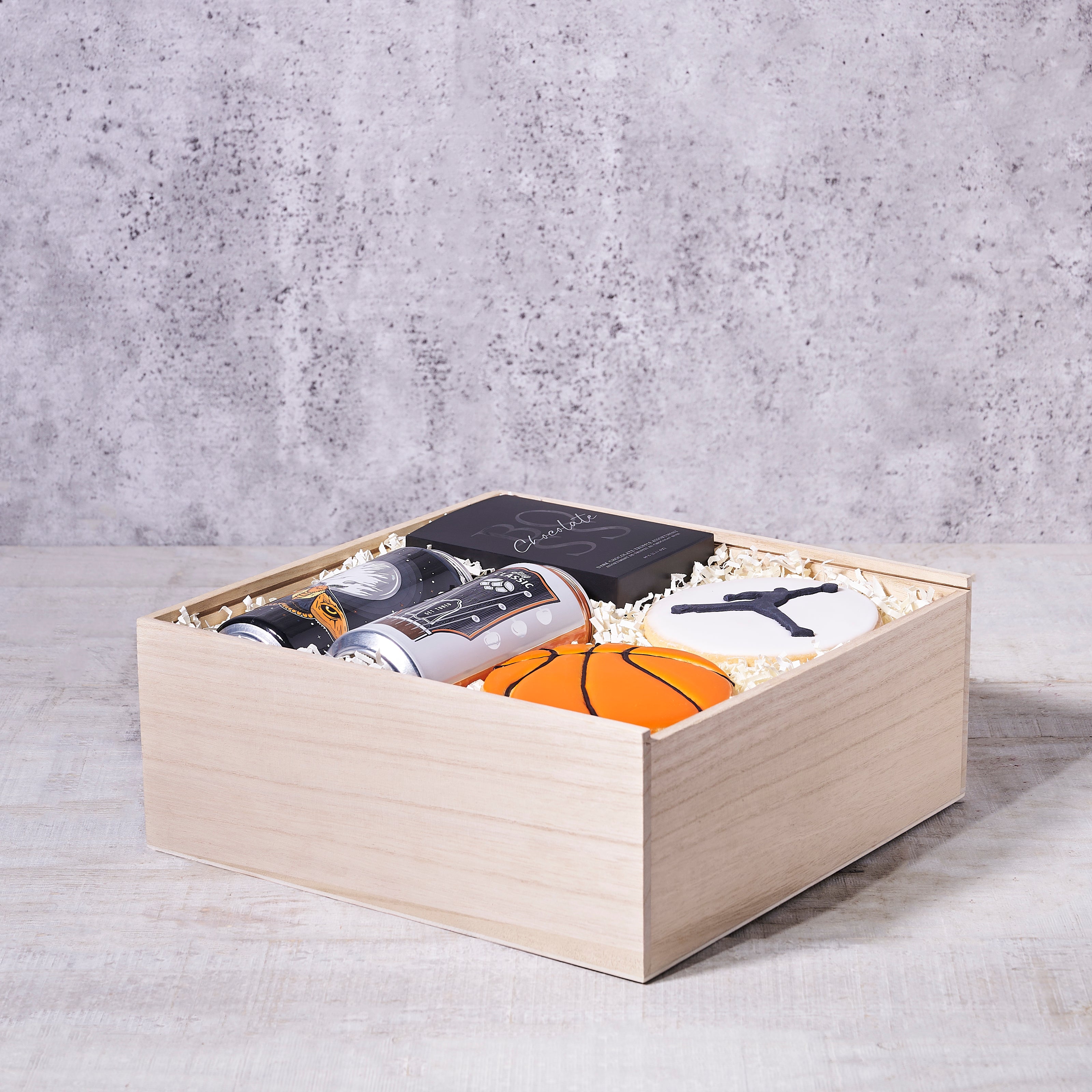 Great for Father’s Day, The Slam Dunk Father’s Day Gift Basket is perfect for any dad that loves basketball. Complete with two craft beers, a box of dark chocolate truffles, and two basketball cookies, this is sure to be an absolute hit. Everything is packed with care into a wooden gift box that’s great for presentation and display. Of course, if you wish, you may also add on your choice of wine, beer, champagne, gourmet snacks, sweet treats, and more from our extensive custom options.